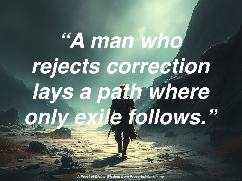 A man who rejects correction lays a path where only exile follows. Like Cain, who turned away from God’s warning and chose pride over repentance, such a person sets in motion a journey that leads to isolation and separation. The refusal to heed wisdom or recognize one’s own failings invites the inevitable consequence of wandering, disconnected from the source of true peace and restoration.